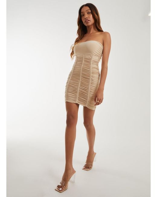 Women's Natural Ruched Corset Bandeau Mini Dress