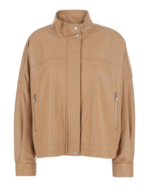 Women's Brown Jacket With High Collar And Side Zip Pockets