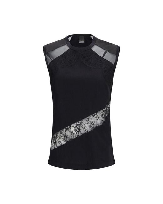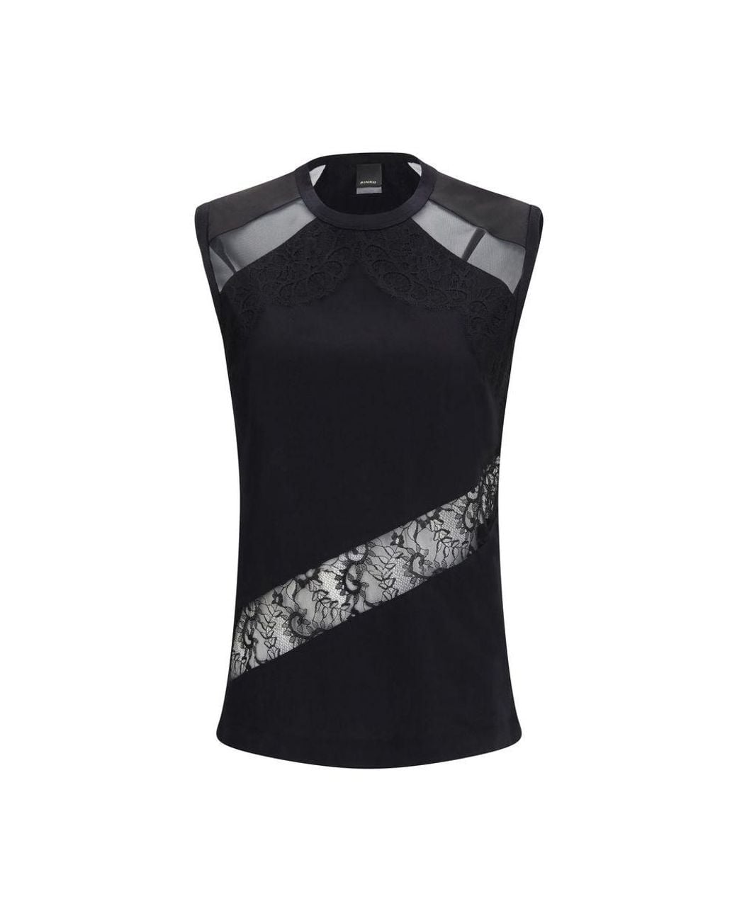 The Top Molly by Pinko is a feminine and modern garment, made of soft cotton jersey and featuring sheer inserts and lace details. The sleeveless design combines lightness and style, making it perfect for refined and contemporary looks. Season: SS26Fit: RegularComposition: 100% Cotton. Colour: black