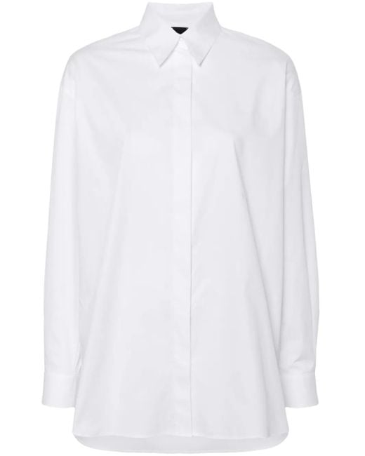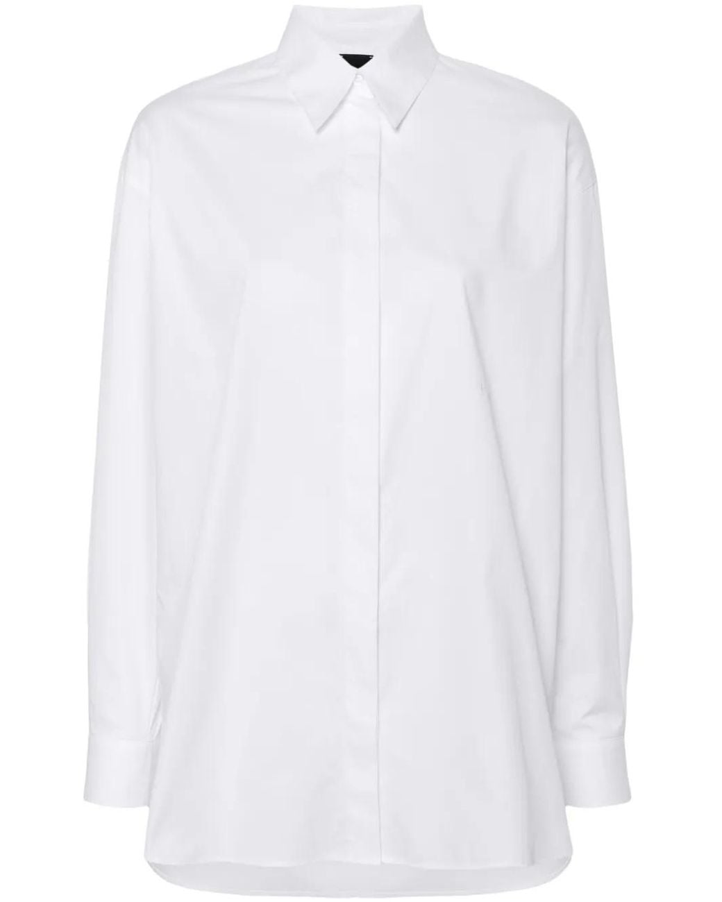 White cotton poplin texture embroidered logo to the front classic collar concealed front button fastening long sleeves buttoned cuffs curved hem Size: 42. Gender: Female. Material:Cotton. Colour: white