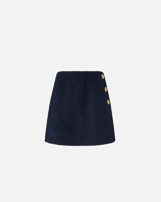 Women's Blue Cotton And Wool Bouclé Mini Wrap Skirt