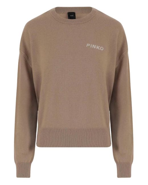 Women's Brown Crew Neck Knitwear Jumper With Logo Detail