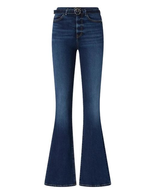 - Embroidered-Belt Flare Jeans