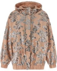 Go to PINKOBomber jacket made from comfortable jersey with a warm feel and patent leather-effect coating and lined with warm fleece. This oversized piece is made practical by the stand-up collar, zip fastening and side
