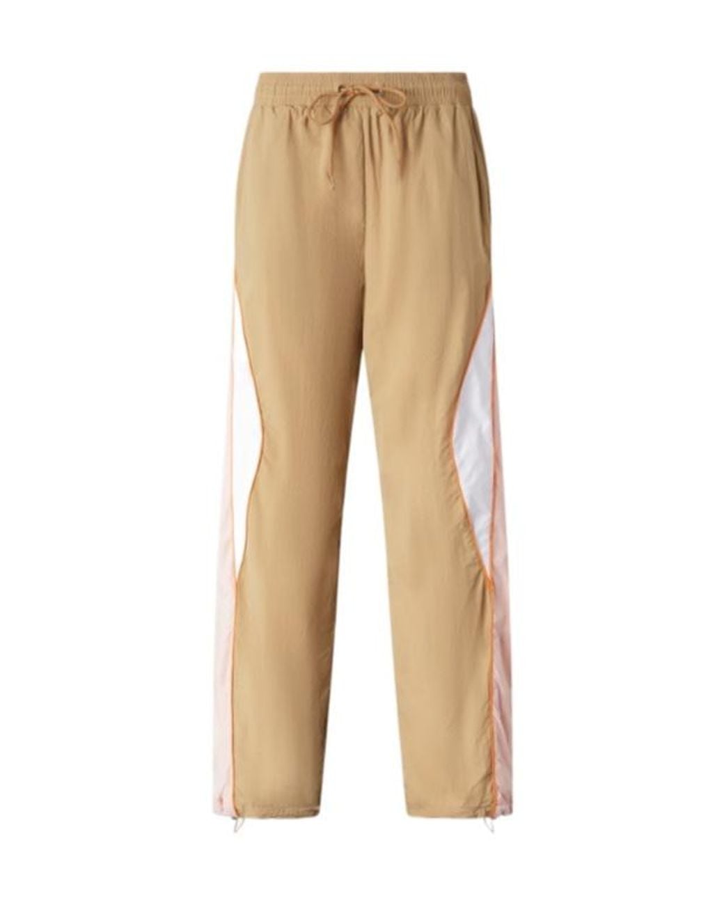 Tracksuit-style sports bottoms in lightweight technical canvas with wide legs sporting a contrasting insert at the side and contrasting-colour piping. These wide-leg joggers are complete with side pockets and an adjustable drawstring at the bottom of the legs to cinch the volume and tailor the fit. The elasticated waist with drawstring allows you to tighten the waist further. These trousers give everyday styles a special athleisure touch, making them ideal for comfy, ultra-cool daytime ensembles. Colour: natural