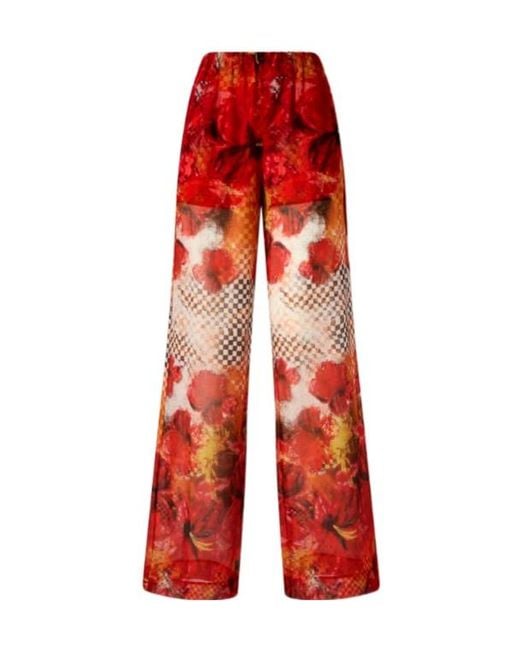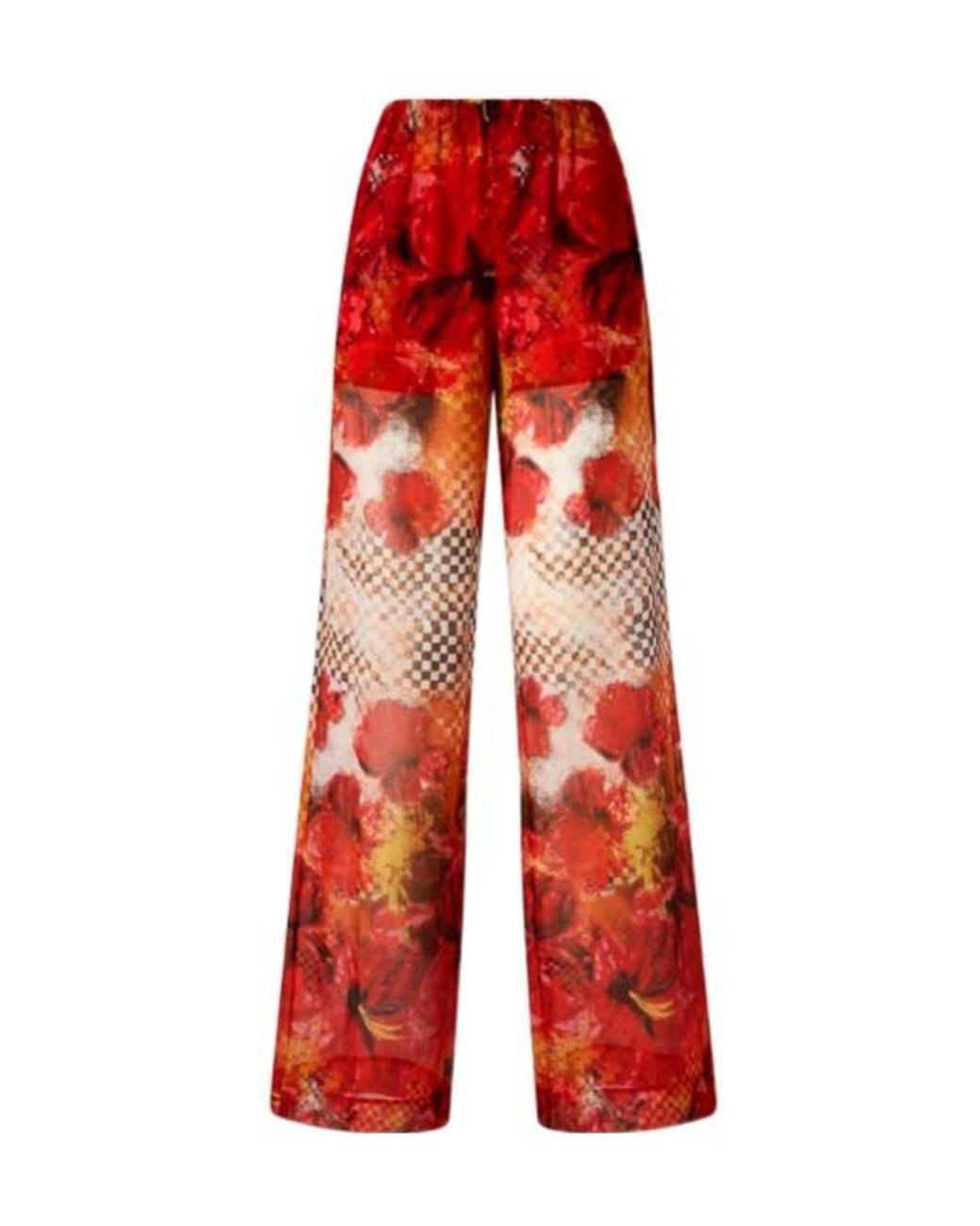 These trousers feature straight-cut wide legs, in-seam side pockets and an elasticated waist. Colour: red