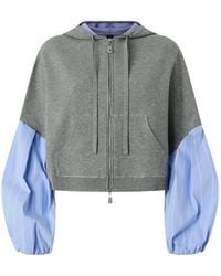 Go to FARFETCHGrey hooded zip fastening striped puff sleeves front pouch pockets Size: M. Gender: Female. Material:Cotton/Nylon/Elastane. Colour: blue