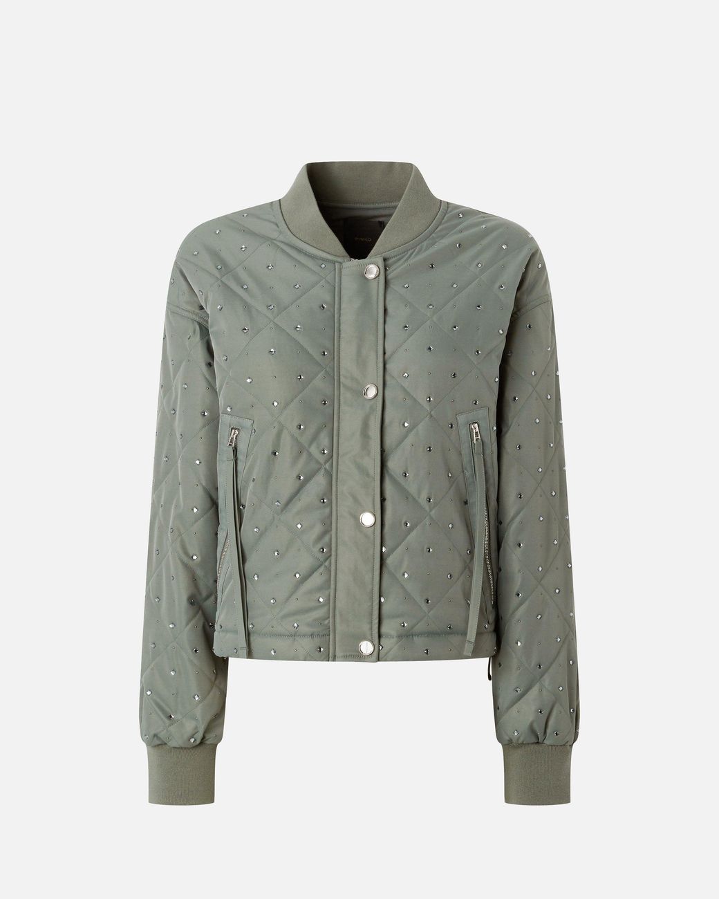 - Quilted Bomber Jacket With Rhinestones And Studs