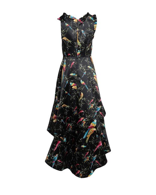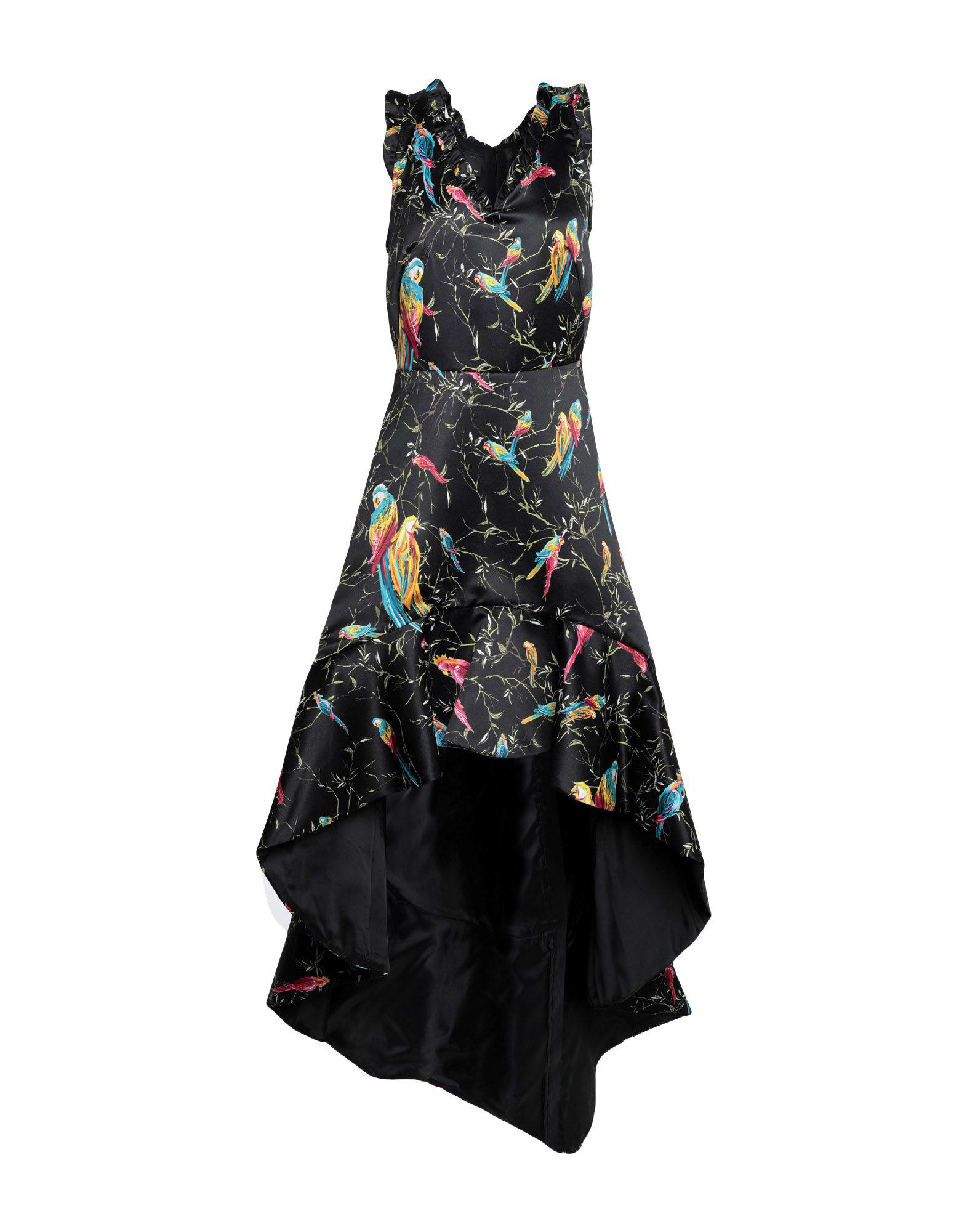 satin, no appliqués, multicolour pattern, v-neck, sleeveless, rear closure, zip, fully lined, dress. 100% Polyester. Colour: black