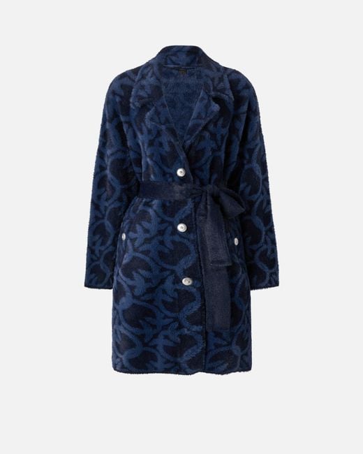 Women's Blue Velour-effect Coat With Jacquard Logo