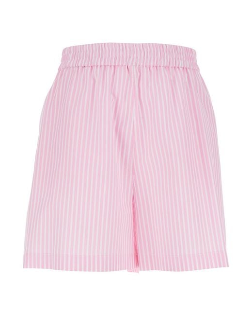 Women's Pink Striped Fabric Shorts For And Bermuda