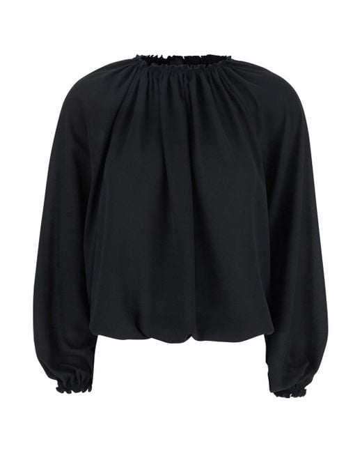 Women's Black Top With Dropped Shoulders And Curlsin Fabric