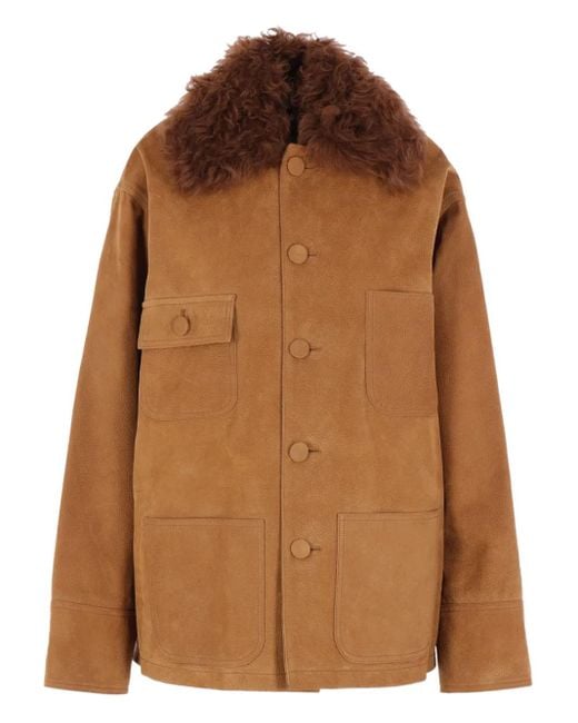 Women's Brown Shearling-Collar Pocket Jacket