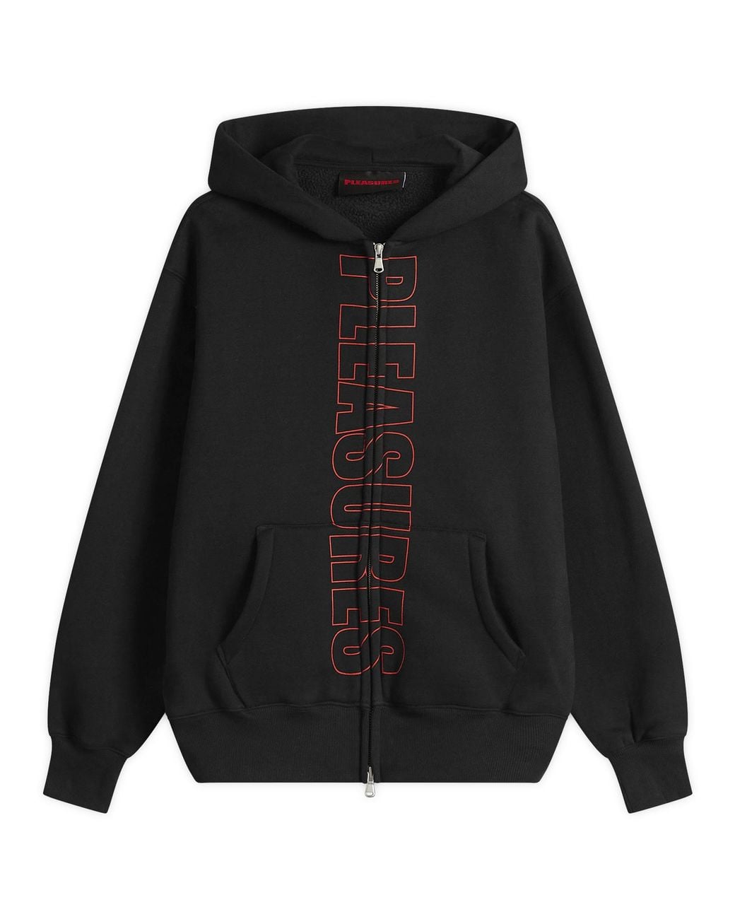 Speaking to POP alt cultures through graphic prints, this Pleasures hoodie is off duty inspired. Cut from a cotton fleece blend, a screen-printed logo down the front is split up by the full zip closure. 100% Cotton, Fixed Hood, Zip Closure, Ribbed Trims, Style Code: P25W035-BLK, Shop All Men’s Pleasures Hoodies, Shop All Men’s Hoodies, - Pleasures Men's Impact Zip Hoodie Black