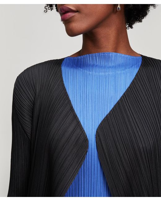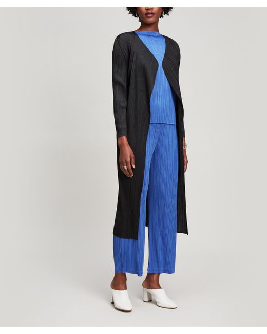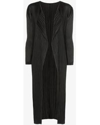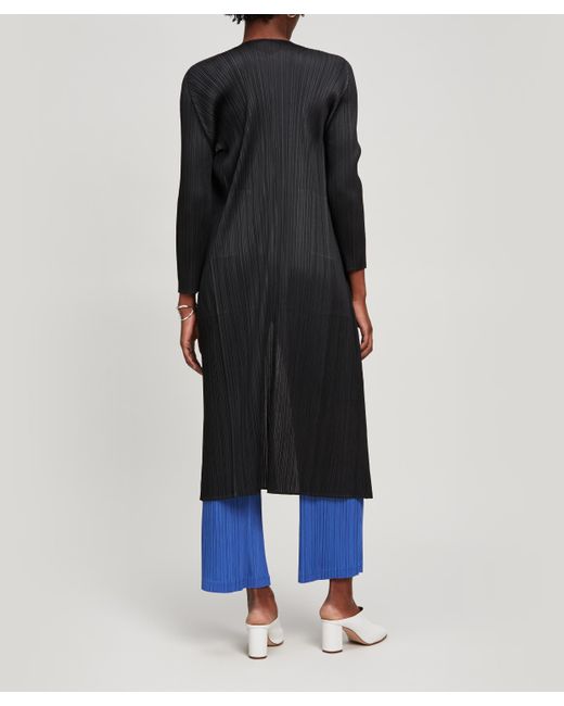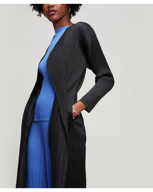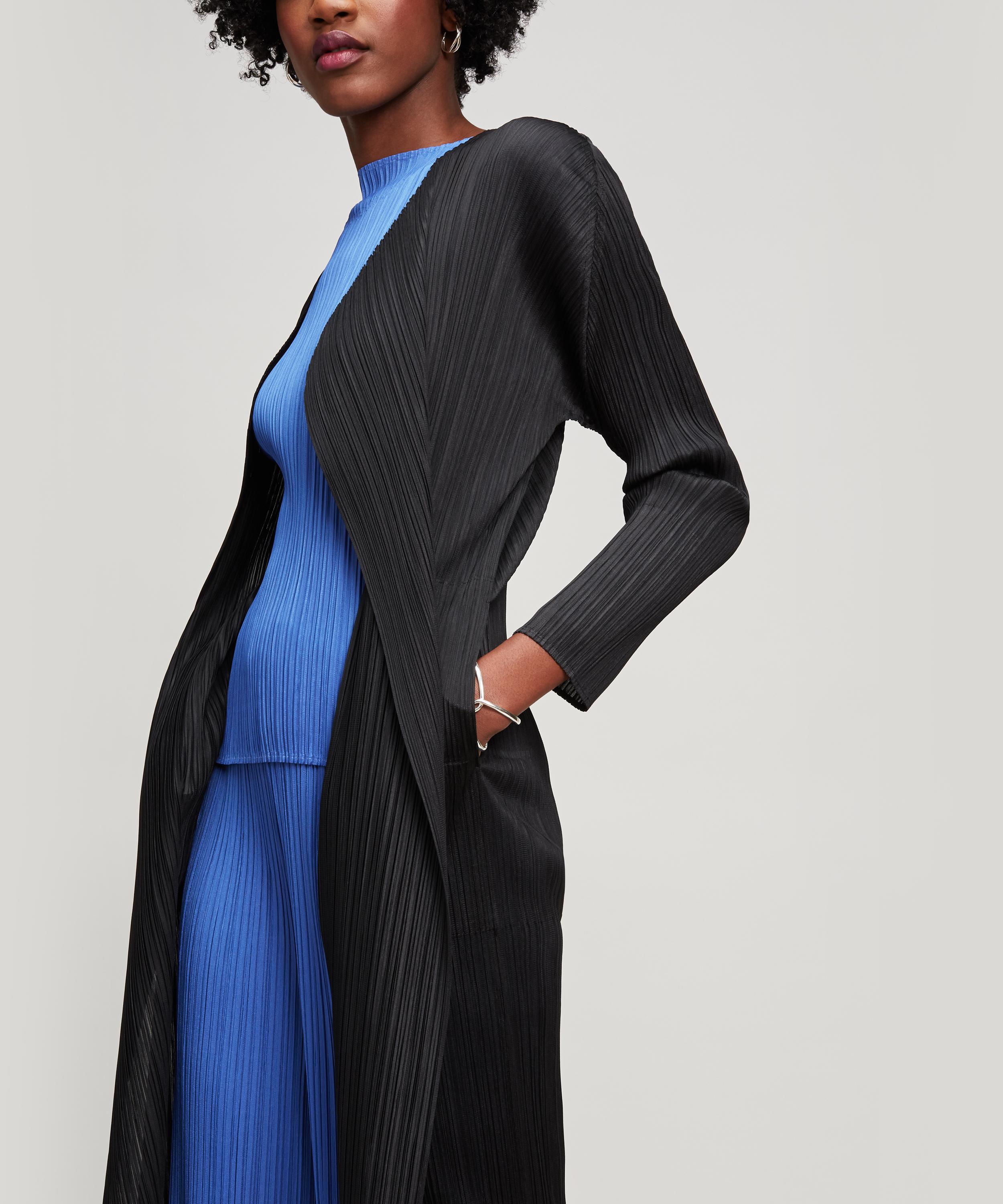 Long, loose design. Showcases Issey Miyake's innovative pleating technique. Please note, the warping and twisting of pleats is unique to every garment and as such each piece may fall in a slightly varied way. Model is 181cm/5'11"and wears size 3. An elegant, lightweight long coat from PLEATS PLEASE - a diffusion line of garments that showcase Issey Miyake's trademark pleating technique, first introduced in 1989. PLEATS PLEASE collections demonstrate the adaptability and durability of Issey Miyake's technical weaves. This long coat makes the perfect easy cover-up for summer's breezy evenings. The button-free design means it is worn open and cascading around your silhouette. With the innovative technique meaning there is no need for ironing - pack it for your next holiday. 100% Polyester. Machine wash. Japanese designer Issey Miyake founded the Miyake Design Studio in Tokyo in 1970. Miyake quickly became known for his groundbreaking pleating techniques; using heat to imbue fabric with a 'memory' that keeps pleats in place. Pleats Please launched in 1993 as a capsule collection of Miyake's patented pleating and today incorporates sculptural dresses, jackets and separates. Colour: black