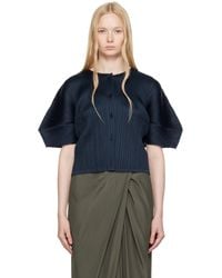 Pleats Please Issey Miyake Women's Blue Pleated Monthly Colours April Cardigan