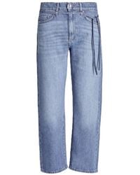 Go to MiintoPnts 05 The O Shape Jeans combine a classic blue denim wash with structured seat pleats and a detachable mini pocket at the waistband for a relaxed, modern look. Designed for everyday wear,