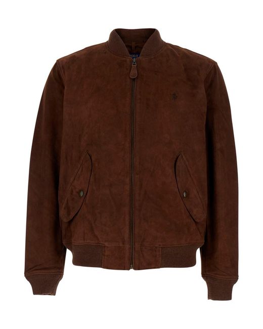 Men's Brown Bomber Jacket With Pony Embroidery On The Fron