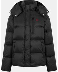 Go to ASOSCoats & Jackets by Polo Ralph Lauren On-point puffer game Drawstring hood Zip and snap fastening Logo embroidery to chest Side pockets Regular fit. Colour: black