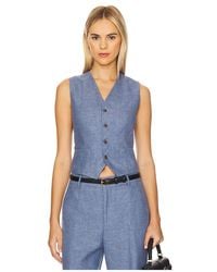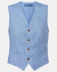 Polo Ralph Lauren Women's Blue Pinstriped Linen And Cotton-Blend Twill Vest