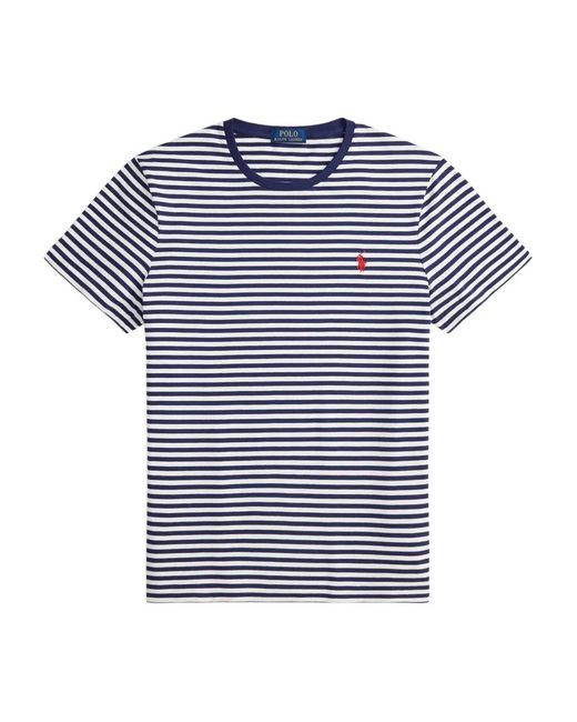 Navy blue and white striped pattern embroidered Polo Pony crew neck short sleeves Size: XS. Gender: Male. Material:Cotton.