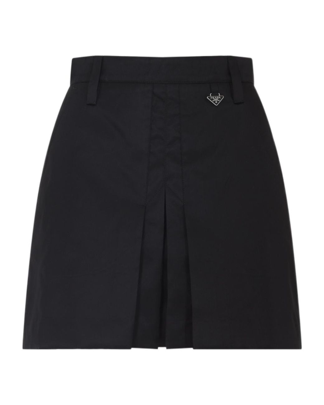 Product details This Re-Nylon miniskirt with hybrid style combines feminine allure with the functional, sporty character of regenerated nylon. The style with pleats on the front and back is decorated with the iconic enamelled metal triangle logo. For sustainable care to preserve the product's characteristics and reduce microfiber shedding, we recommend not washing the item too often. Let the product air out after every use and have it dry cleaned at a specialized ecological dry cleaners. * Product code: 21Y009_1WQ8_F0002_S_OOO * Lined garment * Zipper closure * Enamelled metal triangle logo * Angled slash pockets * Waistband with belt loops * Front and back pleats * Pressed garment * Imported * The model is 180 cm tall and wears a size 38 * Height: 42cm Main material: 100% Recycled Polyamide Colour: black