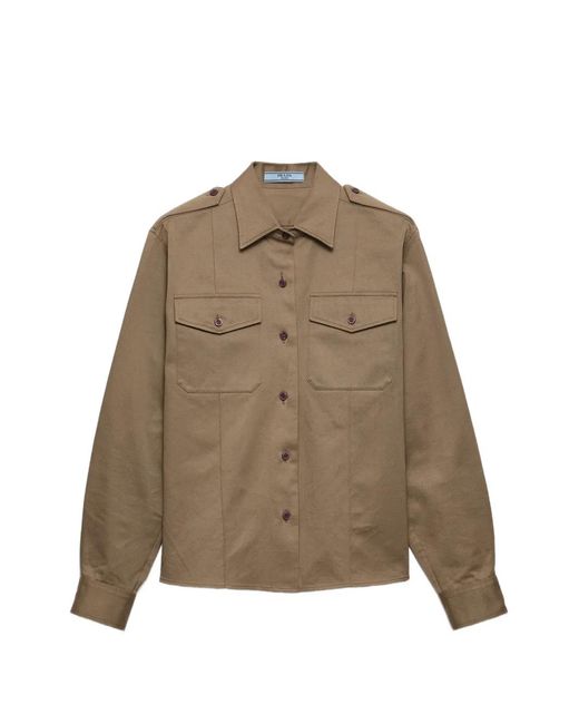 The Spring/Summer 2026 collection breaks the rules and redefines silhouettes and occasions of use, transforming the workwear shirt into a sophisticated garment. The pragmatic simplicity of the chino silhouette reflects a precise harmony between clean lines and essential details. menswear fit classic collar button closure long sleeves flapped patch pockets fabric triangle logo cotton Size: 38. Gender: Female. Material:Cotton.