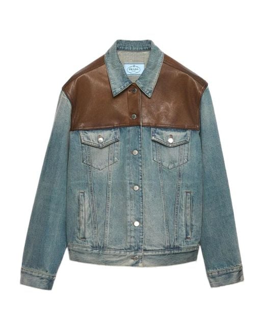 Light blue front button fastening two chest flap pockets two side welt pockets buttoned cuffs bleached treatment unlined garment oversized fit leather inserts Size: S. Gender: Female. Material:Cotton/Calf Leather. Colour: blue