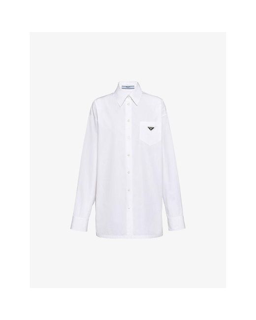 Women's White Logo-Plaque Long-Sleeve Cotton Shirt
