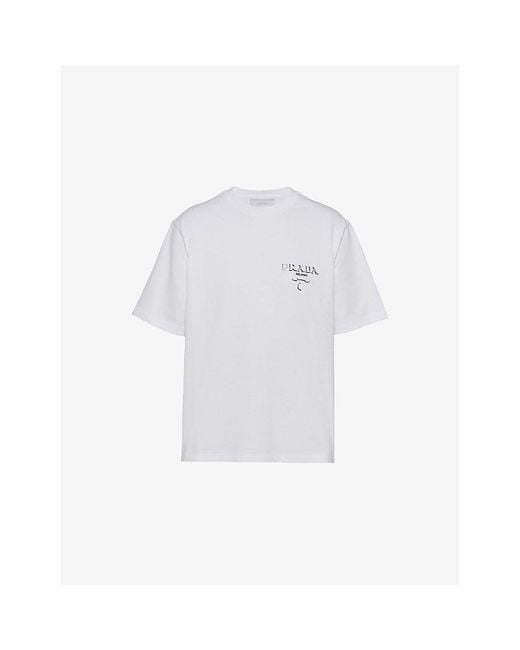 Men's White Logo-Print Dropped-Shoulder Cotton-Jersey T-Shirt