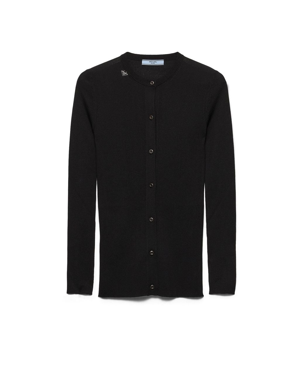 Slim-fit silhouette ---Ribbed knit---Round neck---Front button closure Colour: black