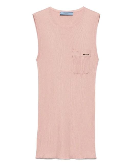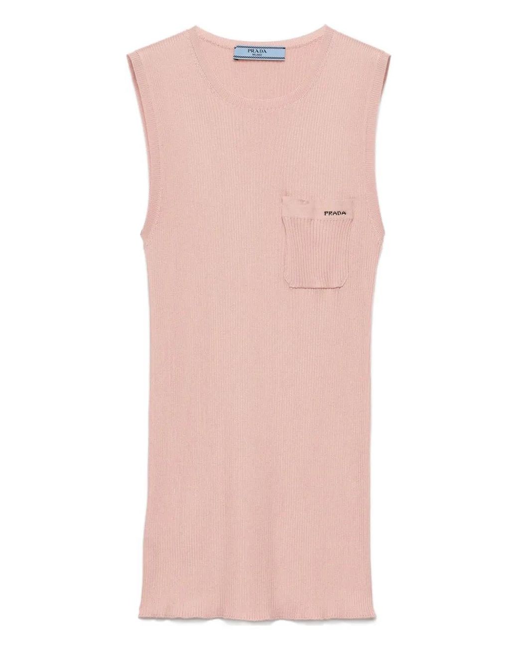 Pink ribbed knit patch pocket embroidered logo sleeveless Size: 36. Gender: Female. Material:Recycled Silk.