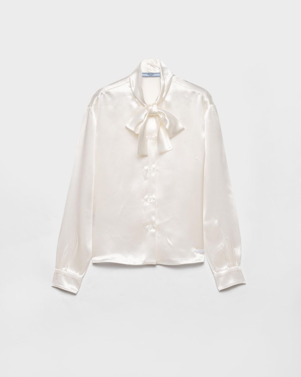 Women's Natural Satin Bow-Neck Button-Down Blouse