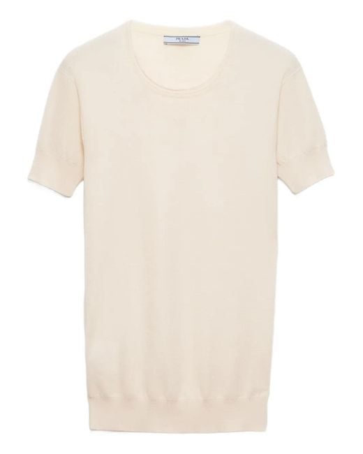 Off-white short sleeves ribbed sleeve trim ribbed hem crew neck rear triangle logo Size: 38. Gender: Female. Material:Cotton/Silk.