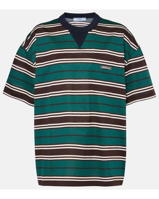 Striped Cotton Jersey T-Shirt - Green