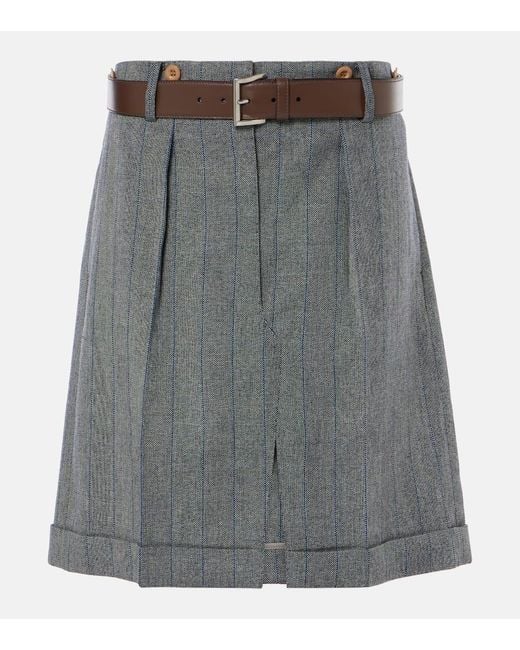 Pinstriped Mouliné Wool Miniskirt - Brown
