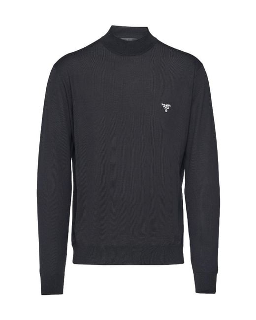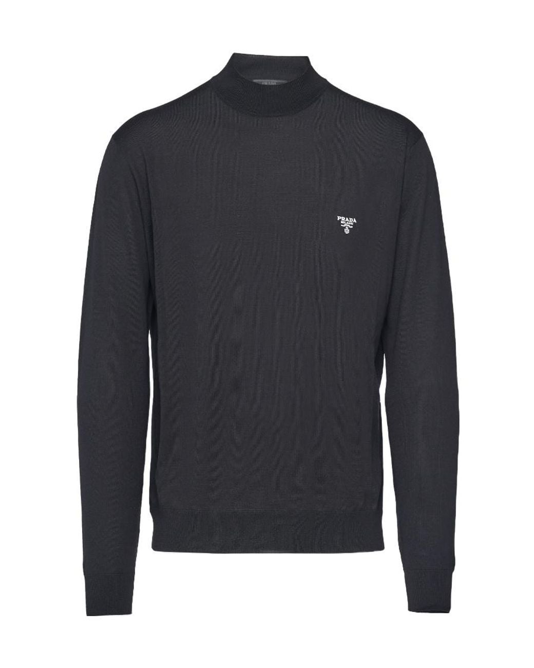 Black, rib knitted round collar, long sleeves, rib knitted cuffs and lower, embroidered logo. Colour: blue