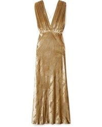 Helen Asymmetric Printed Devoré Silk-blend Satin Dress