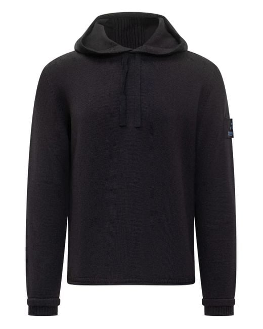 Blue ribbed detailing drawstring hood logo patch long sleeves Size: S. Gender: Male. Material:Wool.