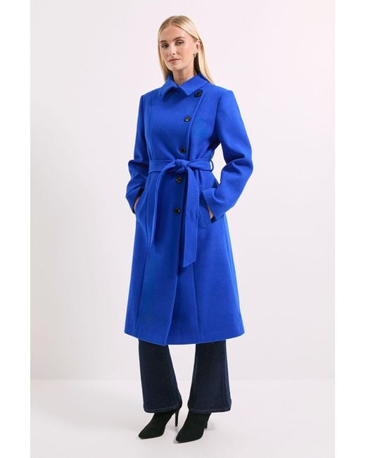 Long Sleeve Wrap Skirt Crepe Midi Dress - Blue