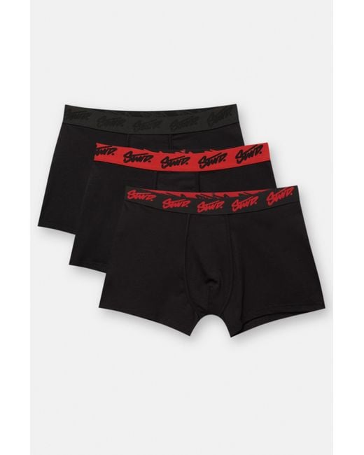 Pack of 3 black boxers featuring an elastic waistband with a red STWD logo. Colour: red