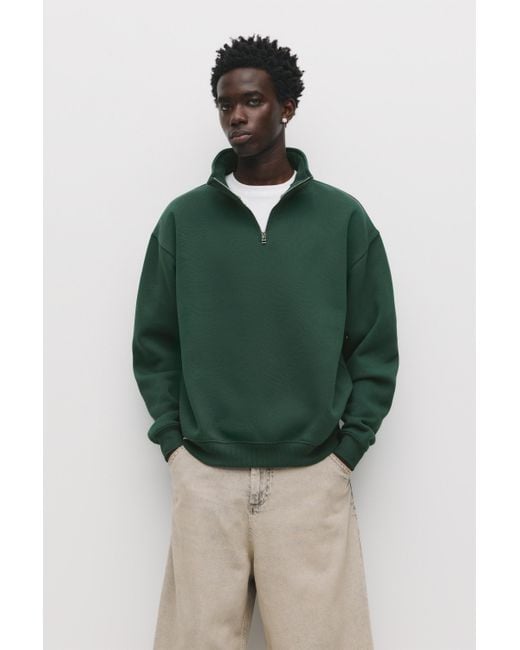 Basic long sleeve sweatshirt with a high neck and zip fastening. Colour: green