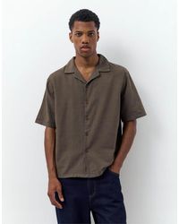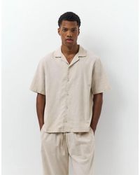 Go to Pull&BearShort sleeve collared shirt with a button-up front. Made of a linen (55%) and cotton (45%) blend. Total look. Colour: grey