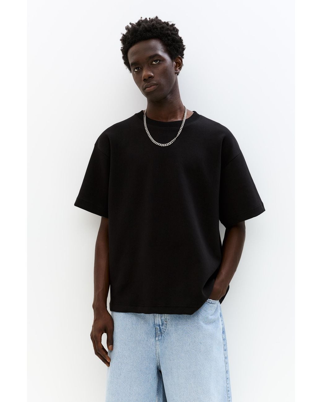 Basic short sleeve sweatshirt with a round neck, made from a slightly elastic fabric. Colour: black