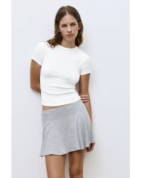 Tops by Pull&Bear Crew neck Short sleeves Cropped length Fitted design Slim fit. Cotton/Elastane. Colour: white