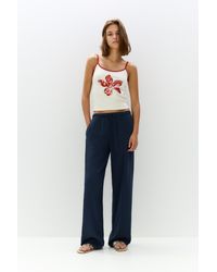 Trousers & Leggings by Pull&Bear Regular rise Drawstring waistband Wide cut Regular fit. Viscose/Linen. Colour: blue