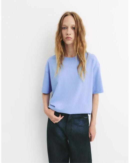 Tops by Pull&Bear Crew neck Drop shoulders Half sleeves Oversized fit. Cotton. Colour: blue