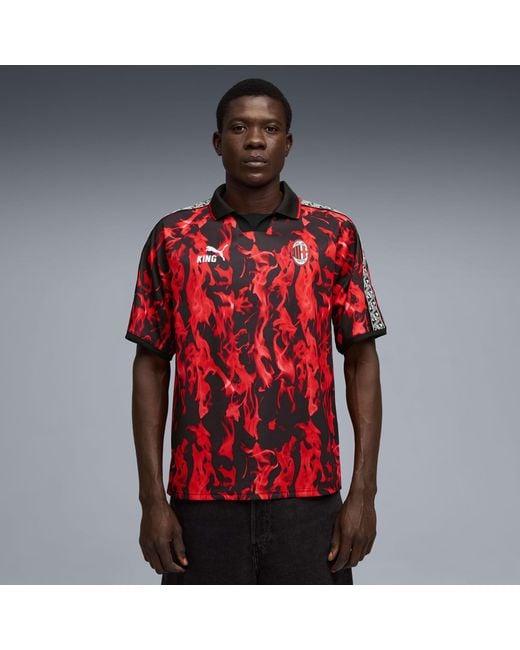 This retro AC Milan jersey celebrates the legacy of the KING line, blending timeless elements with an archive-inspired aesthetic. It's a tribute to true royalty on and off the pitch.. Visit our page to learn more about our for all time red . | PUMA AC Milan King Retro Jersey Men, For All Time Red/Black, size 3XL, Clothing Colour: red