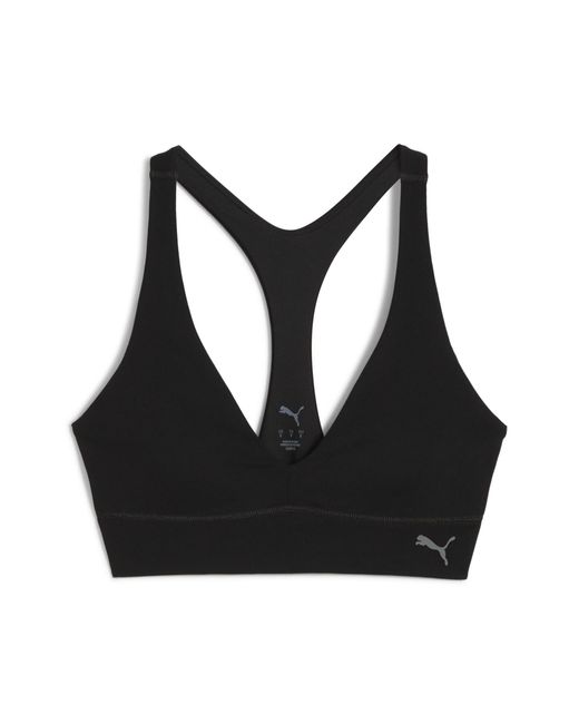 Turn heads with a plunge neckline and seamless SHAPELUXE compression for a sculpted fit that moves with you. Featuring dryCELL to keep you fresh and removable pads for custom comfort. Perfect for low-impact workouts or laid-back days. FEATURES & BENEFITS dryCELL: Performance technology designed to wick moisture from the body and keep you free of sweat during exercise Made with at least 50% recycled materials. Fit: Tight Main material: Interlock Plunge cut Removable pads Support: recommended for low-impact workouts. | PUMA SHAPELUXE Plunge Bra in Black | Size Large