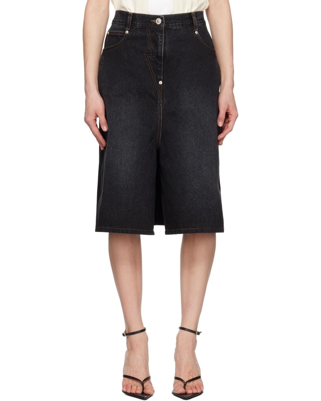 Non-stretch denim and French terry skort. · Panelled construction · Belt loops · Three-pocket styling · Zip-fly with central rivet · Fading at front · Central vent at front hem · Drawstring at elasticized back waistband · Integrated briefs underlay · Logo-engraved silver-tone hardware · Contrast stitching in tan Supplier color: Black Colour: black